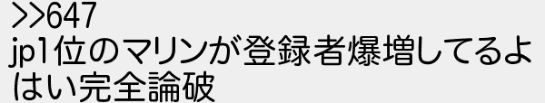 653: [sage] 1970/01/01(木) 09:33:42 >>647 jp1位のマリンが登録者爆増してるよ はい完全論破 http://egg.5ch.net/test/read.cgi/streaming/1660252150/653