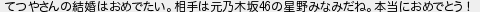 てつやさんの結婚はおめでたい相手は元乃木坂の星野みなみだね本当におめでとう!