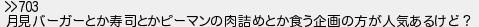 月見バーガーとか寿司とかピーマンの肉詰めとか食う企画の方が人気あるけど?