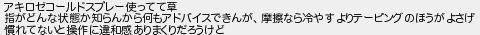 アキロゼコールドスプレー使ってて草 指がどんな状態か知らんから何もアドバイスできんが摩擦なら冷やすよりテーピングのほうがよさげ 慣れてないと操作に違和感ありまくりだろうけど