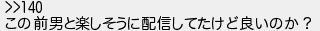 146: [sage] 2022/09/15(木) 02:06:30.55 >>140 この前男と楽しそうに配信してたけど良いのか? http://egg.5ch.net/test/read.cgi/streaming/1663173551/146
