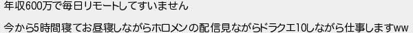 年収万で毎日リモートしてすいません 今から時間寝てお昼寝しながらホロメンの配信見ながらドラクエしながら仕事します