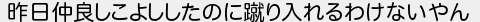 昨日仲良しこよししたのに蹴り入れるわけないやん