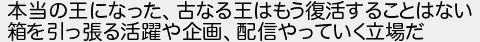 本当の王になった古なる王はもう復活することはない 箱を引っ張る活躍や企画配信やっていく立場だ