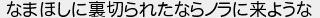44: (ワッチョイW) [sage] 2022/09/27(火) 00:44:16.83 ID:0 なまほしに裏切られたならノラに来ような http://egg.5ch.net/test/read.cgi/streaming/1663296284/44
