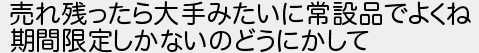 売れ残ったら大手みたいに常設品でよくね 期間限定しかないのどうにかして