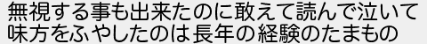 無視する事も出来たのに敢えて読んで泣いて 味方をふやしたのは長年の経験のたまもの