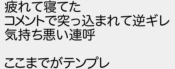 疲れて寝てた コメントで突っ込まれて逆ギレ 気持ち悪い連呼 ここまでがテンプレ