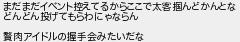 まだまだイベント控えてるからここで太客掴んどかんとな どんどん投げてもらわにゃならん 肉アイドルの握手会みたいだな