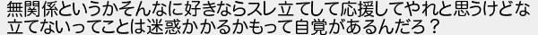 無関係というかそんなに好きならスレ立てして応援してやれと思うけどな 立てないってことは迷惑かかるかもって自覚があるんだろ?