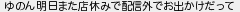 ゆのん明日また店休みで配信外でお出かけだって