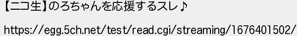429: [] 2023/02/16(木) 14:51:28.26 【ニコ生】のろちゃんを応援するスレ♪ https://egg.5ch.net/test/read.cgi/streaming/1676401502/ http://egg.5ch.net/test/read.cgi/streaming/1676026607/429