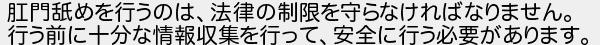 525: [sage] 2023/02/17(金) 22:06:38.03 肛門舐めを行うのは、法律の制限を守らなければなりません。 行う前に十分な情報収集を行って、安全に行う必要があります。 http://egg.5ch.net/test/read.cgi/streaming/1676026607/525