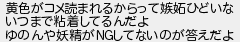 黄色がコメ読まれるからって嫉妬ひどいな いつまで粘着してるんだよ ゆのんや妖精がしてないのが答えだよ