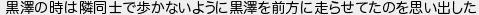 黒の時は隣同士で歩かないように黒を前方に走らせてたのを思い出した