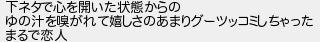 下ネタで心を開いた状態からの ゆの汁をがれて嬉しさのあまりグーツッコミしちゃった まるで恋人