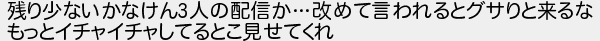 残り少ないかなけん人の配信か改めて言われるとグサりと来るな もっとイチャイチャしてるとこ見せてくれ