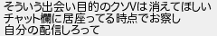 そういう出会い目的のクソは消えてほしい チャット欄に居座ってる時点でお察し 自分の配信しろって