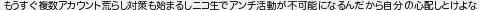 もうすぐ複数アカウント荒らし対策も始まるしニコ生でアンチ活動が不可能になるんだから自分の心配しとけよな