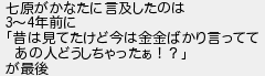 七原がかなたに言及したのは 年前に 昔は見てたけど今は金金ばかり言ってて あの人どうしちゃったぁ!? が最後