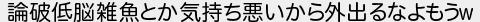 論破低脳雑魚とか気持ち悪いから外出るなよもう