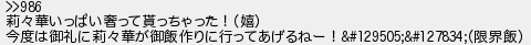991: (ワッチョイW 5fed-EVZl) [] 2026/01/10(土) 08:00:04.24 ID:GuXlbS0R0 >>986 莉々華いっぱい奢って貰っちゃった!(嬉) 今度は御礼に莉々華が御飯作りに行ってあげるねー!🧡🍚(限界飯) http://egg.5ch.net/test/read.cgi/streaming/1760408564/991