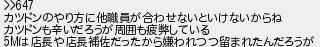 カツドンのやり方に他職員が合わせないといけないからね カツドンも辛いだろうが周囲も疲弊している は店長や店長補佐だったから嫌われつつ留まれたんだろうが