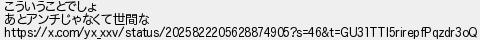 653: (ワッチョイ 1f7e-BRQv [2400:2200:7c2:f088:*]) [] 2026/02/23(月) 19:02:05.10 ID:JtcbjH3Q0 こういうことでしょ あとアンチじゃなくて世間な https://x.com/yx_xxv/status/2025822205628874905?s=46&t=GU31TTl5rirepfPqzdr3oQ http://egg.5ch.net/test/read.cgi/streaming/1771410166/653