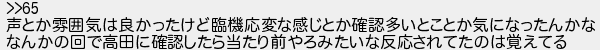 声とか雰囲気は良かったけど臨機応変な感じとか確認多いとことか気になったんかな なんかの回で高田に確認したら当たり前やろみたいな反応されてたのは覚えてる