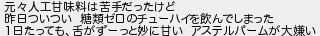 元人工甘味料は苦手だったけど 昨日ついつい 糖類ゼロのチューハイを飲んでしまった 1日たっても舌がずーっと妙に甘い アステルパームが大嫌い
