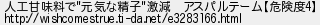 683: [] 2014/09/22(月) 23:36:08.18 ID:ybxASeA3 人工甘味料で"元気な精子"激減 アスパルテーム【危険度4】 http://wishcomestrue.ti-da.net/e3283166.html http://kizuna.5ch.io/test/read.cgi/supplement/1129955152/683
