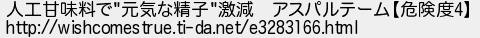 683: [] 2014/09/22(月) 23:36:08.18 ID:ybxASeA3 人工甘味料で"元気な精子"激減 アスパルテーム【危険度4】 http://wishcomestrue.ti-da.net/e3283166.html http://kizuna.5ch.io/test/read.cgi/supplement/1129955152/683