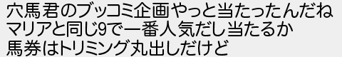 穴馬君のブッコミ企画やっと当たったんだね マリアと同じで一番人気だし当たるか 馬券はトリミング丸出しだけど
