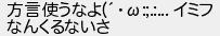 116: [sage] 2020/11/05(木) 07:32:34 ID:cVoa4F3G 方言使うなよ(´・ω:;.:... イミフ なんくるないさ http://mevius.5ch.net/test/read.cgi/utu/1597655310/116