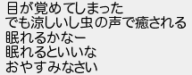 目が覚めてしまった でも涼しいし虫の声で癒される 眠れるかなー 眠れるといいな おやすみなさい