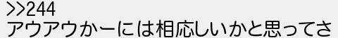 246: (ワッチョイ 2701-fO6A) [sage] 2022/09/24(土) 11:05:21.02 ID:sWNQiKNA0 >>244 アウアウかーには相応しいかと思ってさ http://mevius.5ch.net/test/read.cgi/utu/1663227257/246