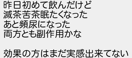 昨日初めて飲んだけど 滅茶苦茶眠たくなった あと頻尿になった 両方とも副作用かな 効果の方はまだ実感出来てない