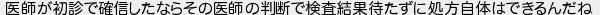 医師が初診で確信したならその医師の判断で検査結果待たずに処方自体はできるんだね