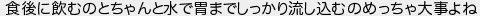 食後に飲むのとちゃんと水で胃までしっかり流し込むのめっちゃ大事よね