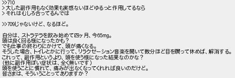 大した副作用もなく効果も実感ないほどゆるっと作用してるなら それはむしろ合ってるんでは じゃないけどなるほど 自分はストラテラを飲み始めて四ヶ月今 頭は良く回る様になったかも? でも仕事の終わりにかけて頭が痛くなる そうした場合トイレとかに行ってリラクゼーション音楽を聞いて数分ほど目をって休めば解消する これって副作用というより頭を使う様になった結果なのかな? 他に副作用ぽい症状は全く無いです 頭を使うことに慣れて痛みが出なくなってくれれば良いのだけど 皆さまはそういうことってありますか?