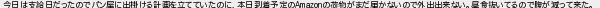 今日は支給日だったのでパン屋に出掛ける計画を立てていたのに本日到着予定のの荷物がまだ届かないので外出出来ない昼食抜いてるので腹が減って来た