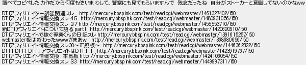 307: [age] 2017/01/07(土) 22:02:10.81 調べてコピペした力作だから何度も使いまわして、警察にも見てもらいますんで 残念だったね 自分がストーカーと意識してないのかなww DTIアフィリエイター訴訟関連スレ http://mercury.bbspink.com/test/read.cgi/webmaster/1461327402/l50 DTIアフィリエイト情報交換スレ 45 http://mercury.bbspink.com/test/read.cgi/webmaster/1480931056/l50 DTIアフィリエイト情報交換スレ 37 http://mercury.bbspink.com/test/read.cgi/webmaster/1455553710/l50 新DTIアフィリエイトについて語る part1 http://mercury.bbspink.com/test/read.cgi/webmaster/1420620910/l50 DTIアフィリエイトで稼ぐ専業くんの日記スレ http://mercury.bbspink.com/test/read.cgi/webmaster/1391615257/l50 webmaster板は終わったwwwざまあw http://mercury.bbspink.com/test/read.cgi/webmaster/1368680656/l50 DTIアフィリエイト情報交換スレ30〜正規板〜 http://mercury.bbspink.com/test/read.cgi/webmaster/1446362322/l50 DTI!DTI!DTI!アフィリエイトはDTI!! http://mercury.bbspink.com/test/read.cgi/webmaster/1423919767/l50 DTIアフィリエイト情報交換 本気板 http://mercury.bbspink.com/test/read.cgi/webmaster/1424106054/l50 DTIアフィリエイト情報交換スレ 33 http://mercury.bbspink.com/test/read.cgi/webmaster/1449997311/l50 http://mercury.bbspink.com/test/read.cgi/webmaster/1483177631/307