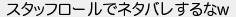 275: [sage] 2020/02/08(土) 00:23:46 ID:W9FywT6P スタッフロールでネタバレするなw http://himawari.5ch.net/test/read.cgi/weekly/1581069708/275