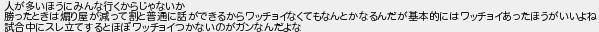 人が多いほうにみんな行くからじゃないか 勝ったときは煽り屋が減って割と普通に話ができるからワッチョイなくてもなんとかなるんだが基本的にはワッチョイあったほうがいいよね 試合中にスレ立てするとほぼワッチョイつかないのがガンなんだよな