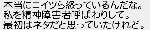 本当にコイツら怒っているんだな 私を精神障害者呼ばわりして 最初はネタだと思っていたけれど