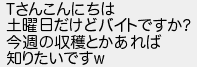 さんこんにちは 土曜日だけどバイトですか 今週の収穫とかあれば 知りたいです