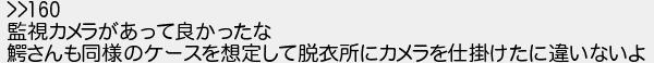 監視カメラがあって良かったな 鰐さんも同様のケースを想定して脱衣所にカメラを仕掛けたに違いないよ