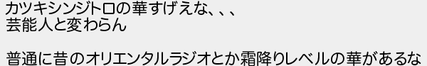 カツキシンジトロの華すげえな 芸能人と変わらん 普通に昔のオリエンタルラジオとか霜降りレベルの華があるな
