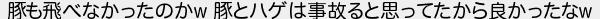 豚も飛べなかったのか 豚とハゲは事故ると思ってたから良かったな