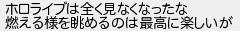 ホロライブは全く見なくなったな 燃える様を眺めるのは最高に楽しいが